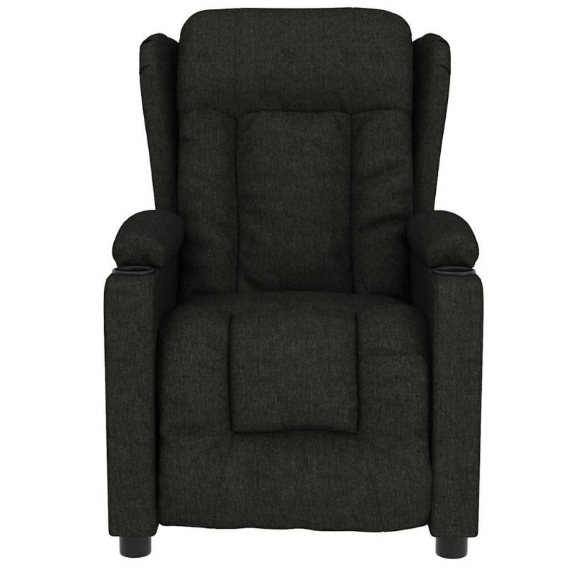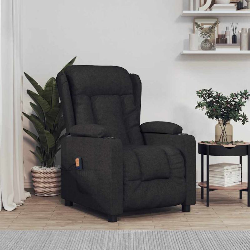 Облегнете се и се отпуснете в този изключително комфортен масажен стол! Функция за ръчно накланяне: Накланящият се стол е специално проектиран с 3 позиции на наклон, така че да можете да регулирате ръчно облегалката и поставката за крака според вашето удобство.Функция за вибрация: Представените 6 масажни точки ви позволяват да изпитате по-целенасочен масаж. Освен това включеното ръчно управление ви позволява да избирате различни програми за масаж. Функцията за масаж се захранва от USB конектора, но сертифицираният 5V USB източник на захранване не е включен.Удобно седене: Дебело подплатената седалка, облегалката и широките подлакътници, покрити с текстил, осигуряват уютно и топло усещане, което ви кара да се чувствате като в прегръдка, докато седите. Тъканта се отличава със семпъл и изчистен вид и е дишаща и издръжлива.Здрава и стабилна рамка: Рамката, изработена от дърво и метал, осигурява здрава структура и стабилност. Този накланящ се фотьойл е удобен и издръжлив. Този уред може да се използва от деца над 8 години и лица с намалени физически, сензорни или ментални възможности или липса на опит и знания под надзор или ако са получили инструкции относно употребата на уреда по безопасен начин и разбират възможните опасности. Децата не трябва да си играят с уреда. Почистването и потребителската поддръжка не трябва да се извършват от деца без надзор. Захранването трябва да бъде само с безопасно изключително ниско напрежение, съответстващо на маркировката върху уреда. Включете USB конектора на уреда в USB гнездото на захранването. Моля, обърнете внимание да се използва само сертифицирано захранване DC 5V. По-високото напрежение може да доведе до прегряване и до повреда на устройството, както и до потенциален риск от пожар.