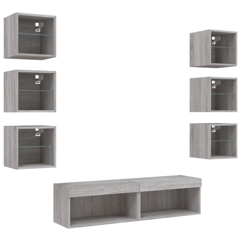 ТВ стенни модули с LED, 8 части, сив сонома, инженерно дърво