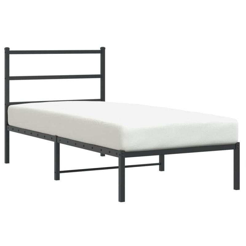 Метална рамка за легло с горна табла, черна, 90x200 см