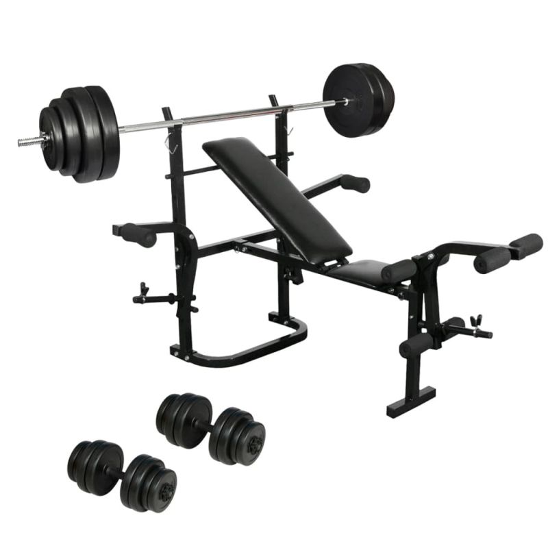 Комплект за домашeн фитнес сгъваема лежанка с щанга и дъмбели