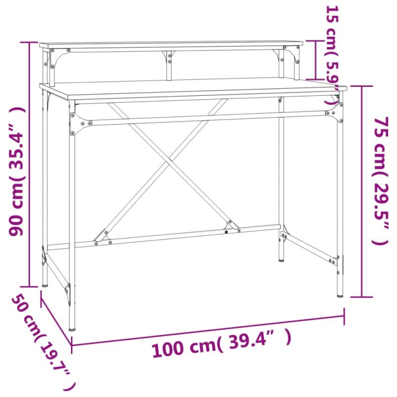 Това бюро се отличава с отличителен индустриален чар и е предназначено да привлича вниманието във вашия дом и офис. Издържлив материал: Инженерната дървесина е с изключително качество с гладка повърхност и се отличава със здравина, стабилност и устойчивост на влага.Стабилна рамка: Рамката на офис бюрото е изработена от желязо. Желязото е здрав и твърд материал. То е солиден фаворит в промишленото и мебелното строителство.Просторен плот: Голямата работна повърхност на това стоящо бюро ви позволява да поставите вашите материали за писане и други необходими неща.Практически рафт: Повдигнете екрана с помощта на горния рафт, така че да виждате всичко на нивото на очите си и да работите в здравословна поза, което ви предпазва от болки във врата и гърба.Индустриален стил: Компютърното бюро добавя очарователен индустриален стил към вашия настоящ интериорен декор. Той добавя вдъхновен от старите фабрики и индустриалното пространство дизайн към жилищната ви площ. Внимание:За предотвратяване на преобръщане този продукт трябва да се използва с предоставения анкер за стена.