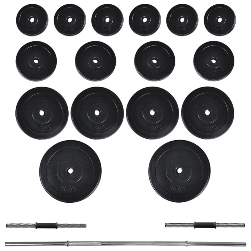 Комплект лежанка със стойка за лост, щанга и дъмбели, 60,5 кг