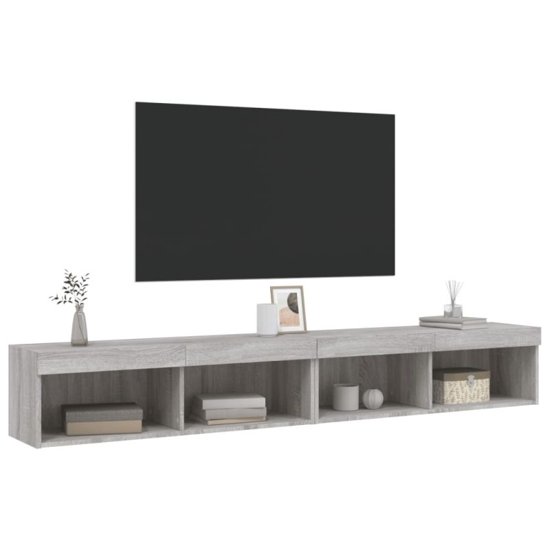 ТВ шкафове с LED осветление, 2 бр, сив сонома, 100x30x30 см