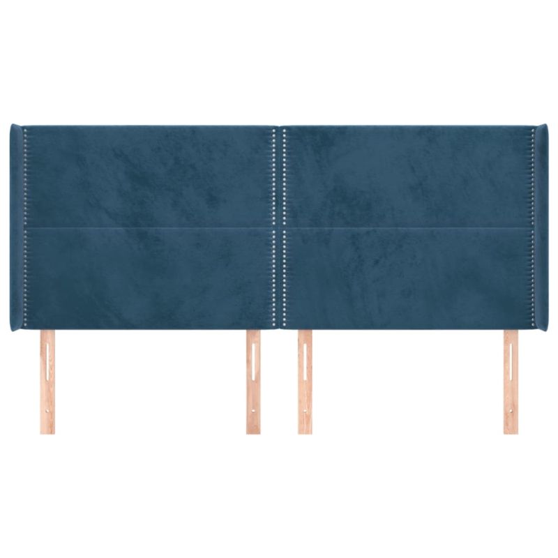 Горна табла за легло с уши, тъмносиня,203x16x118/128 см, кадифе