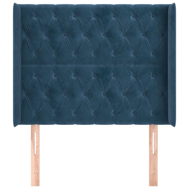 Горна табла за легло с уши, тъмносиня,93x16x118/128см, кадифе