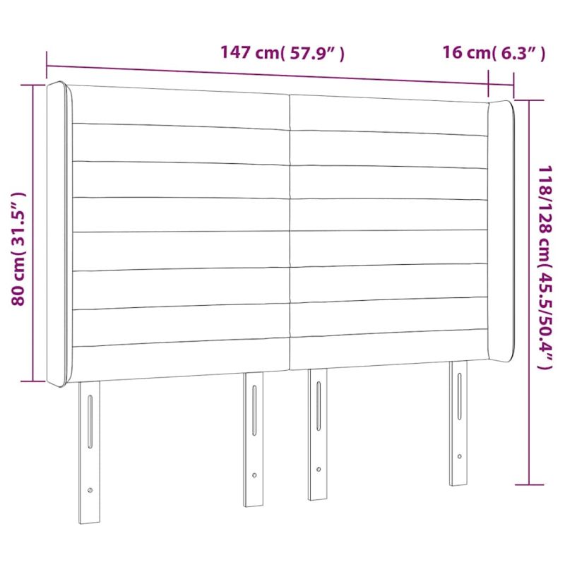 LED горна табла за легло, тъмносиня, 147x16x118/128 см, кадифе