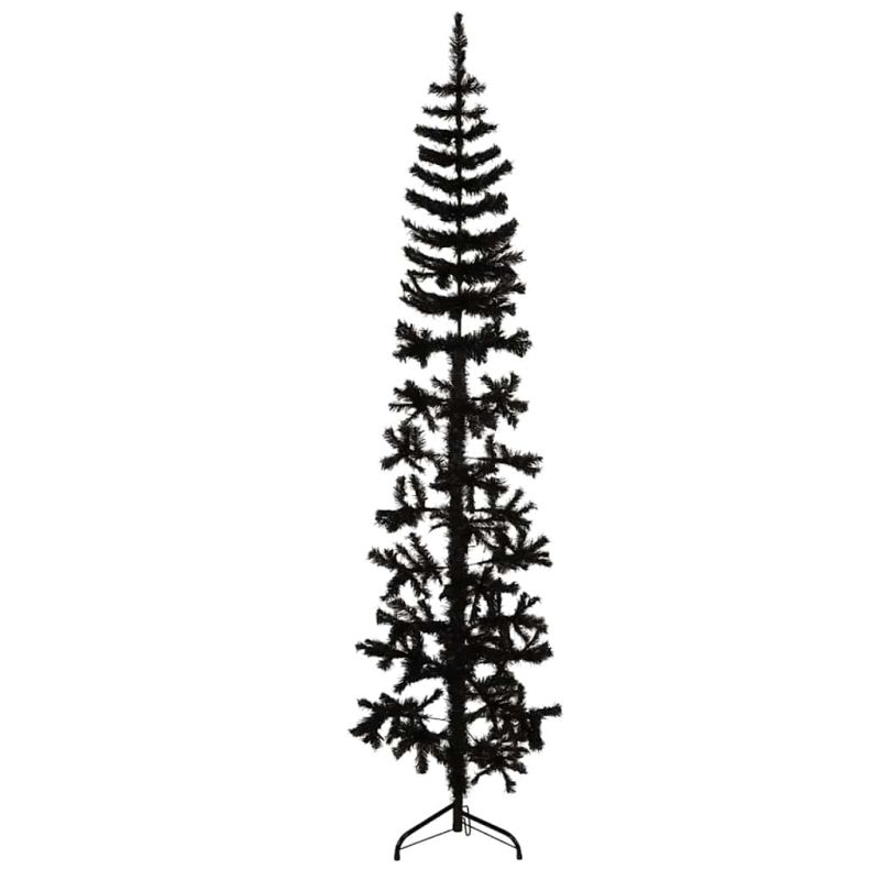 Тънка изкуствена половин коледна елха със стойка черна 180 см