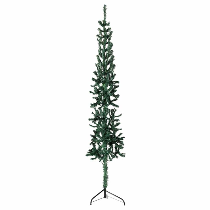 Тънка изкуствена половин коледна елха със стойка зелена 150 см