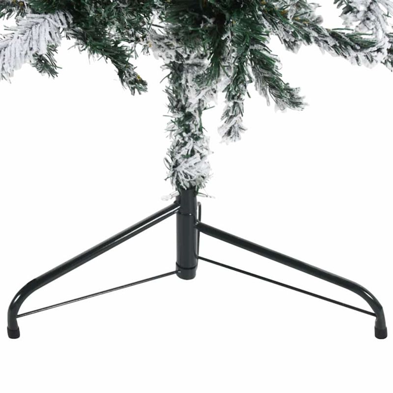 Тънка изкуствена половин коледна елха с флокиран сняг 240 см