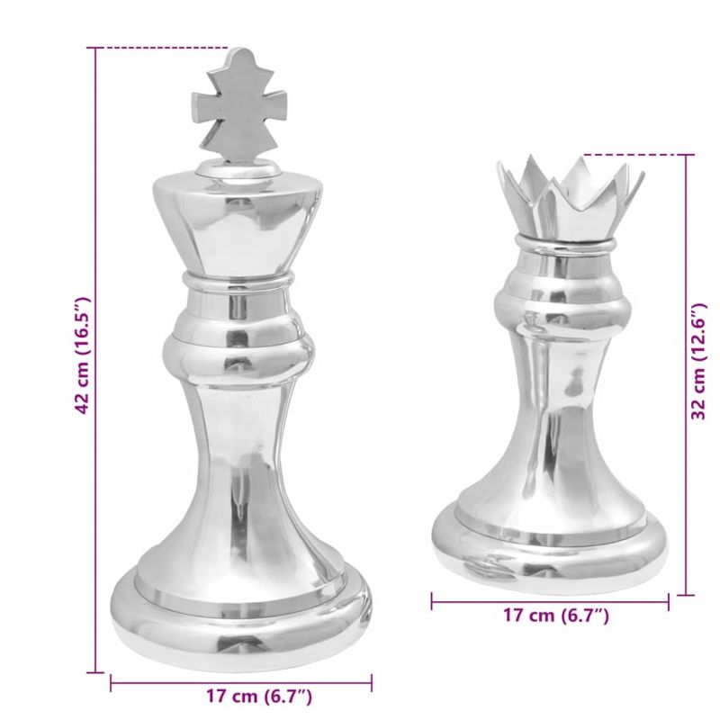 Този комплект от две шахматни скулптури внася изтънченост и модерен вид във всяка всекидневна. С гладко алуминиево покритие, те са истински акцент. Изкусният дизайн и блестящата повърхност веднага привлекат вниманието. Тези скулптури са многофункционални и отлично се вписват в различни стилове. Независимо дали сте фен на изкуството или просто обичате декора, те ще направят всяко място по-красиво. Материал Алуминий: Изработени от качествен алуминий, тези скулптури са здрави и издръжливи. Блясъкът на метала ги прави визуално впечатляващи и добавя модерен стил към вашия декор. Съвременен Гланцов Завършек: С високо гланцовото покритие, скулптурите излъчват топъл блясък. Те лесно се открояват в интериора. Декоративни Вложки: Тези скулптури са обогатени с детайлни акценти, които правят визуалното им присъствие още по-силно. Украсител за Вътрешно Пространство: Подходящи за закрити помещения, те оживяват съвременни интериори. Могат да се поставят навсякъде, добавяйки стил и индивидуалност. Лесна Поддръжка: Поддържайте скулптурите в отлично състояние с минимални усилия. Само един бърз удар с кърпа е достатъчен, за да запазите блясъка им.