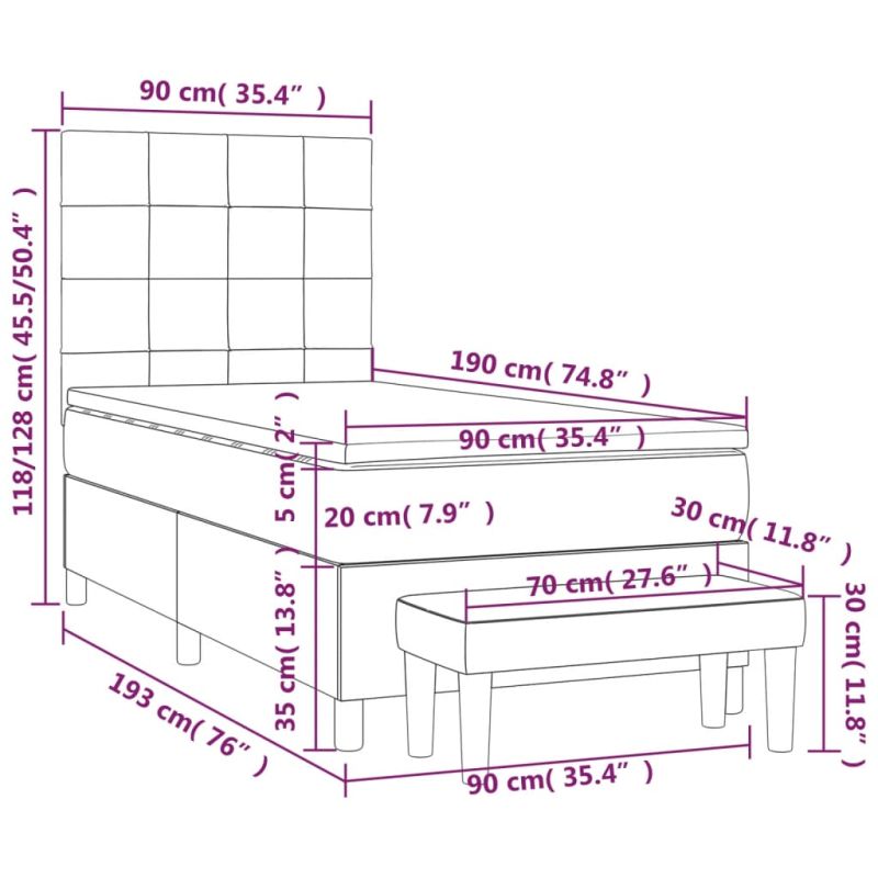 Използвайте това боксспринг легло, за да се насладите на спокоен сън! Предлага ви максимален релакс и приятен сън. Издържлива тъкан: Тъканта се отличава със семпъл и изчистен вид и е дишаща и издръжлива.Практична табла за глава: Горната табла за легло се регулира на височина според вашите предпочитания. Горната част на леглото ви осигурява отлична опора за гърба, докато седите в леглото, за да четете или гледате телевизия.Покет пружинен матрак: Вградените индивидуални покет пружини са известни с много високото си качество, като същевременно осигуряват високо ниво на издръжливост и адаптивност. Те могат ефективно да абсорбират шума и ударите, причинени от мятане и въртене.Средно твърда поддръжка: Матракът за легло перфектно осигурява допълнителна стабилност и точното ниво на твърдост, без да се жертва комфорта. Така той е идеален за спящи по гръб или корем.Благоприятен за кожата топ матрак: Протекторът за матрак има издръжлива, както и щадяща кожата материя, което я прави мека и удобна.Многофункционална пейка: Тази пейка може да служи като допълнително място за сядане във вашия дом. Също така може да се използва като пейка в края на легло. Забележка:От хигиенни съображения матракът не може да бъде върнат, ако опаковката е отстранена или отворена.Всеки продукт се доставя с ръководство за сглобяване в кашона за лесно сглобяване.