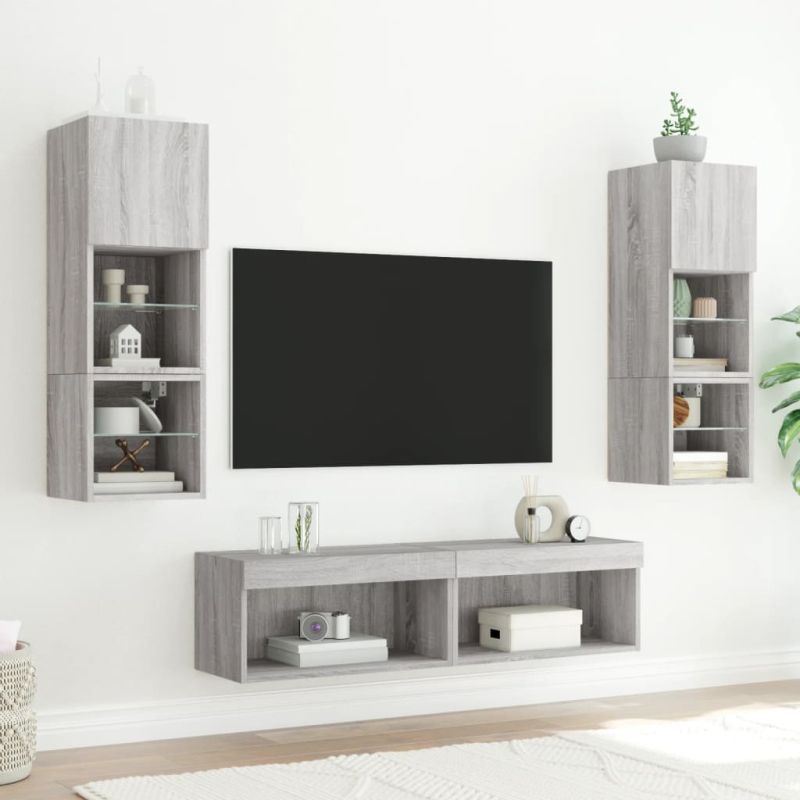 ТВ шкаф с LED осветление, сив сонома, 60x30x30 см