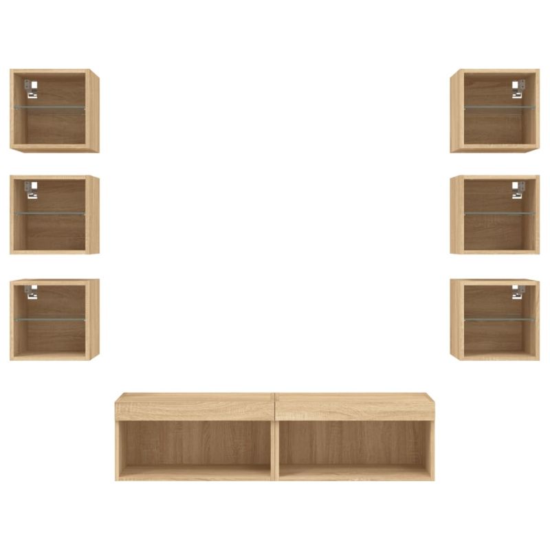 ТВ стенни модули с LED, 8 части, сонома дъб, инженерно дърво