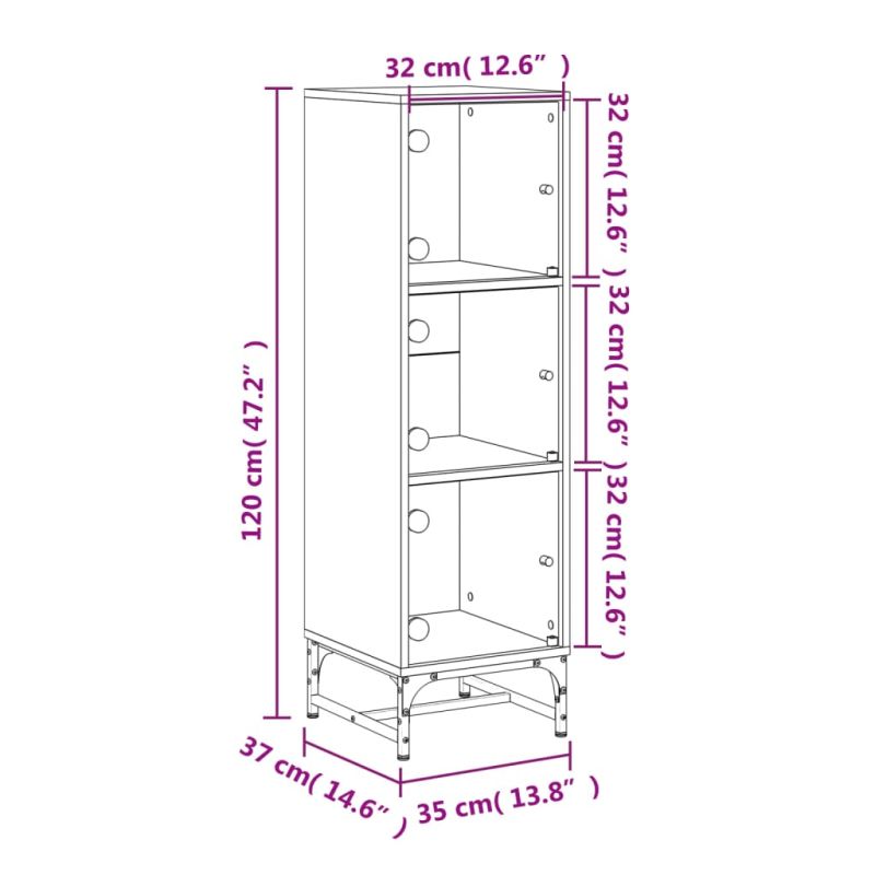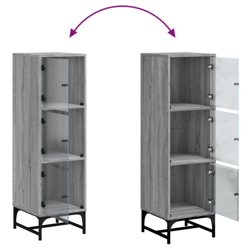 Висок шкаф със стъклена врати, сив сонома, 35x37x120 см