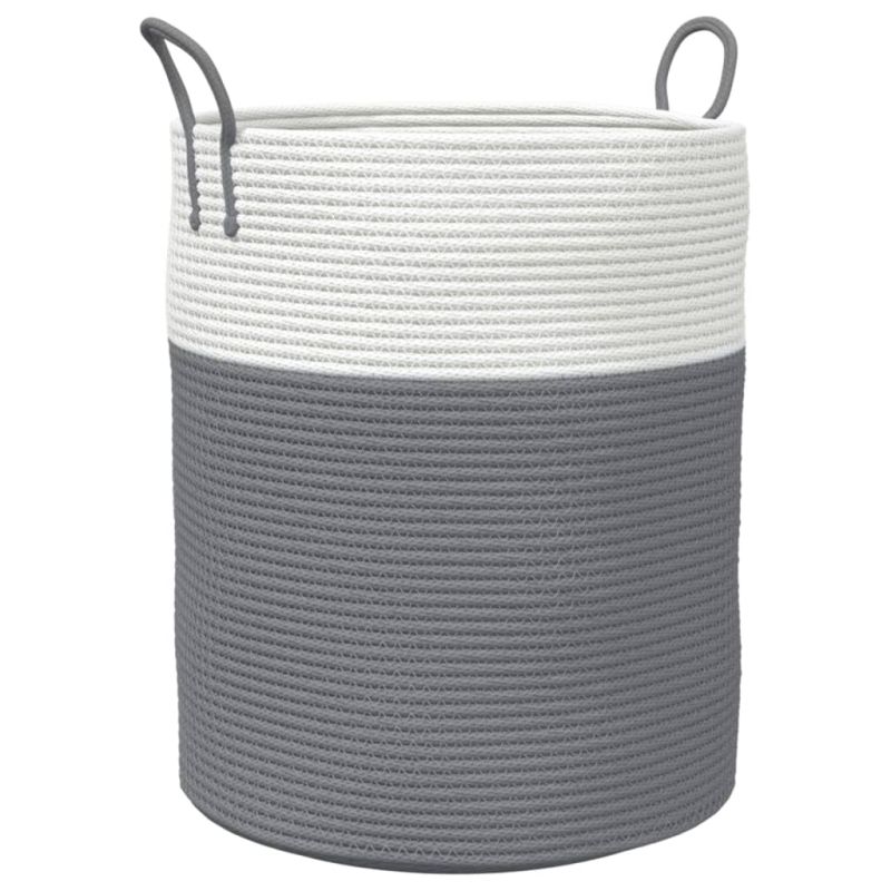 Кош за съхранение, сиво и бяло, Ø38x46 см, памук