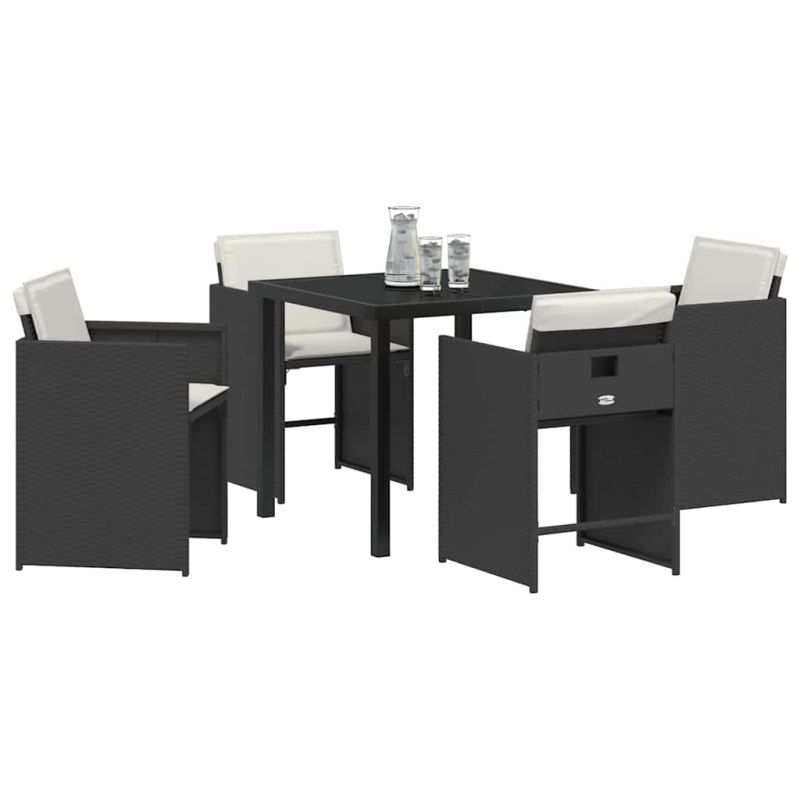 Комплект за хранене в градината 5 pcs Черно полиратан