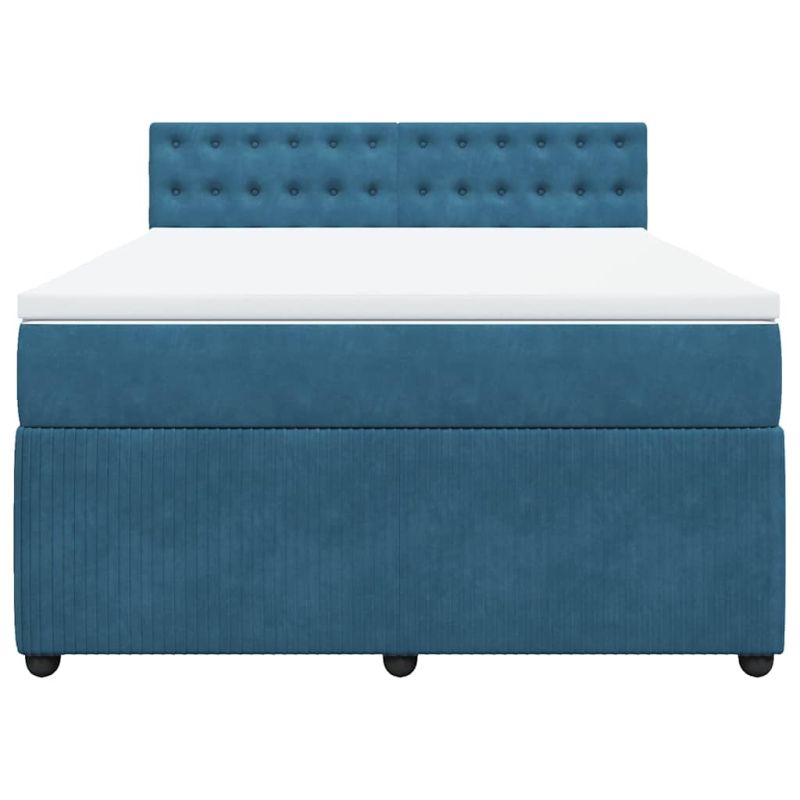 Боксспринг легло с матрак, синьо, 160x200 см, кадифе