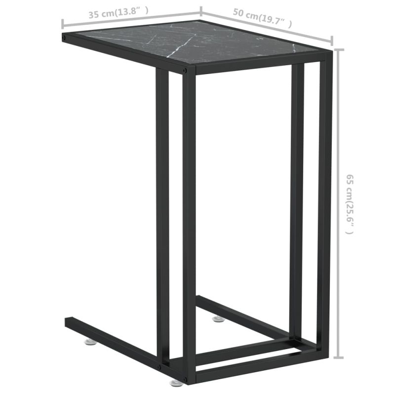Странична маса за компютър, черен мрамор, 50x35x65 см, стъкло