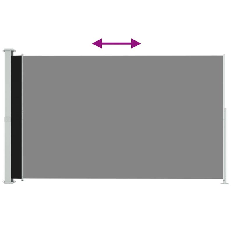 Тази семпла, стилна странична тента създава уютно малко кътче, като същевременно осигурява неприкосновеността, от която се нуждаете на вашата тераса, вътрешен двор или балкон. Тя също така може да предпазва от вятъра и лъчите на залязващото слънце. Платното е изработено от полиестер, който е устойчив на UV лъчи, атмосферни влияния и разкъсване. Касетата е монтирана върху здрава стоманена основа във вертикално положение, а прибиращата се тента може лесно да се изтегли навън. Тя се отличава и с функция за автоматично прибиране. Доставката включва и монтажни аксесоари. GPSR