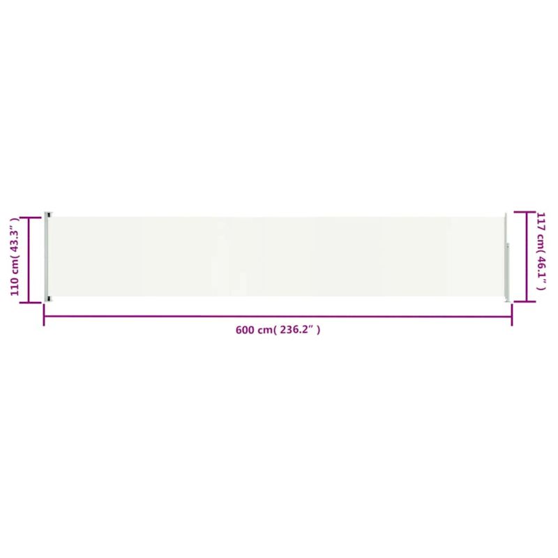 Прибираща се дворна странична тента, 117x600 см, кремава