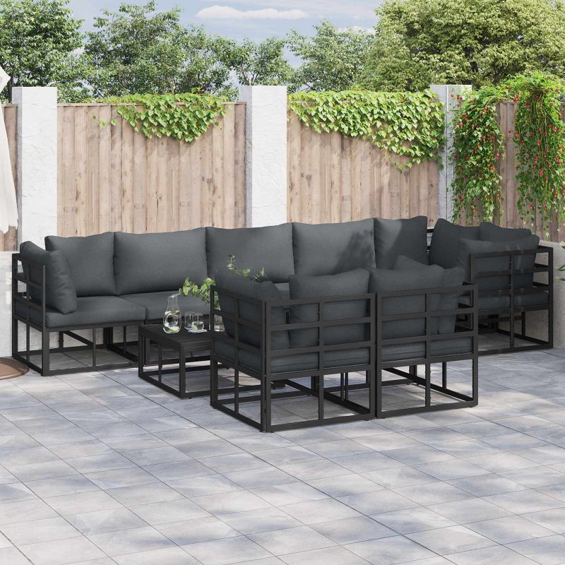 Градински Софа Комплект с възглавница 8 pcs Черно Алуминий