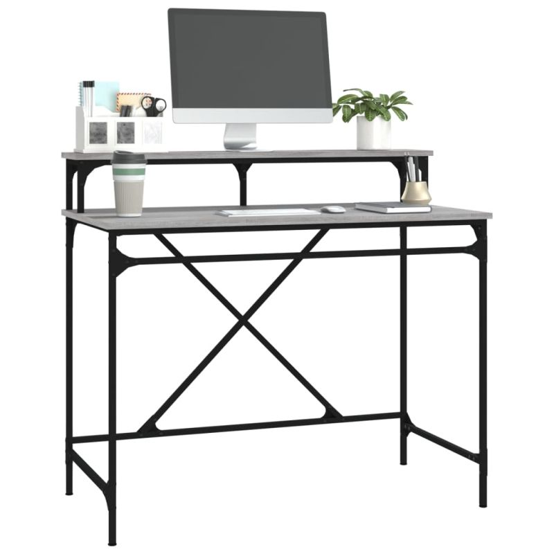 Това бюро се отличава с отличителен индустриален чар и е предназначено да привлича вниманието във вашия дом и офис. Издържлив материал: Инженерната дървесина е с изключително качество с гладка повърхност и се отличава със здравина, стабилност и устойчивост на влага.Стабилна рамка: Рамката на офис бюрото е изработена от желязо. Желязото е здрав и твърд материал. То е солиден фаворит в промишленото и мебелното строителство.Просторен плот: Голямата работна повърхност на това стоящо бюро ви позволява да поставите вашите материали за писане и други необходими неща.Практически рафт: Повдигнете екрана с помощта на горния рафт, така че да виждате всичко на нивото на очите си и да работите в здравословна поза, което ви предпазва от болки във врата и гърба.Индустриален стил: Компютърното бюро добавя очарователен индустриален стил към вашия настоящ интериорен декор. Той добавя вдъхновен от старите фабрики и индустриалното пространство дизайн към жилищната ви площ. Внимание:За предотвратяване на преобръщане този продукт трябва да се използва с предоставения анкер за стена.