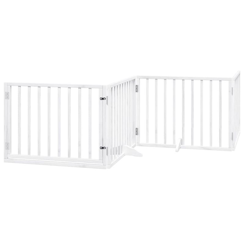 Преградата за кучета държи вашия домашен любимец в определена зона за движение, което може да го предпази и да предотврати безпокойството ви. Издръжлив материал: Преградата за кучета е изработена от тополова дървесина с боя на водна основа, което я прави издръжлива, дълготрайна и лесна за почистване. Лесна за използване: Преградата за кучета не изисква монтаж или пробиване, като така не уврежда дома ви. Тази преграда за кучета може да се сгъва напълно, когато е без крачета, което я прави лесна за пренасяне и съхранение в гардероба или на друго място. Практичен дизайн: Преградата за кучета е снабдена с две здрави крачета, които осигуряват стабилност и позволяват лесно регулиране. Освен това тя включва врата панел и е оборудвана с ключалки, което осигурява по-голяма сигурност и удобство както за вас, така и за вашите домашни любимци. Множество приложения: Тази преграда за кучета може ефективно да попречи на домашните ви любимци да я прескочат и да преминат през нея. Ето защо тя е идеална за обезопасяване на домашните ви любимци във всекидневната, кухнята, на стълбището и на вратата.