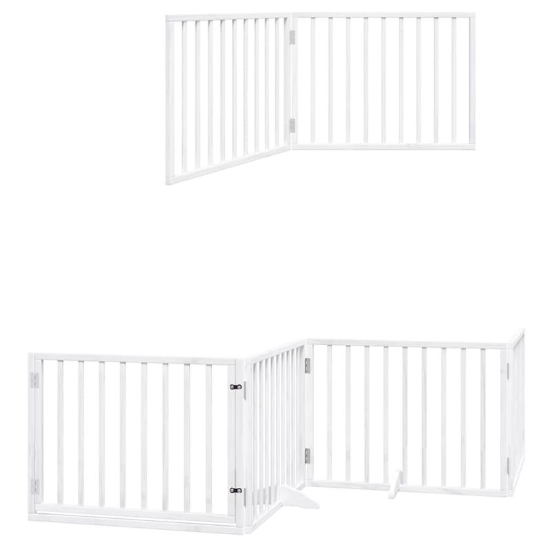 Преградата за кучета държи вашия домашен любимец в определена зона за движение, което може да го предпази и да предотврати безпокойството ви. Издръжлив материал: Преградата за кучета е изработена от тополова дървесина с боя на водна основа, което я прави издръжлива, дълготрайна и лесна за почистване. Лесна за използване: Преградата за кучета не изисква монтаж или пробиване, като така не уврежда дома ви. Тази преграда за кучета може да се сгъва напълно, когато е без крачета, което я прави лесна за пренасяне и съхранение в гардероба или на друго място. Практичен дизайн: Преградата за кучета е снабдена с две здрави крачета, които осигуряват стабилност и позволяват лесно регулиране. Освен това тя включва врата панел и е оборудвана с ключалки, което осигурява по-голяма сигурност и удобство както за вас, така и за вашите домашни любимци. Множество приложения: Тази преграда за кучета може ефективно да попречи на домашните ви любимци да я прескочат и да преминат през нея. Ето защо тя е идеална за обезопасяване на домашните ви любимци във всекидневната, кухнята, на стълбището и на вратата.