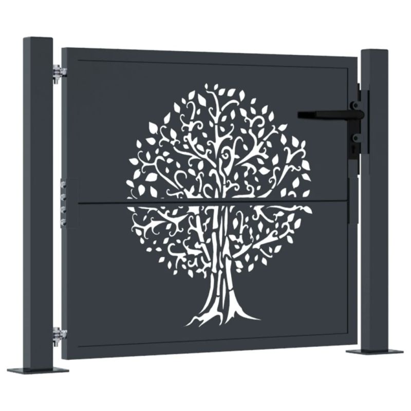 Градинска порта, антрацит, 100x75 см, стоманена, дизайн с дърво
