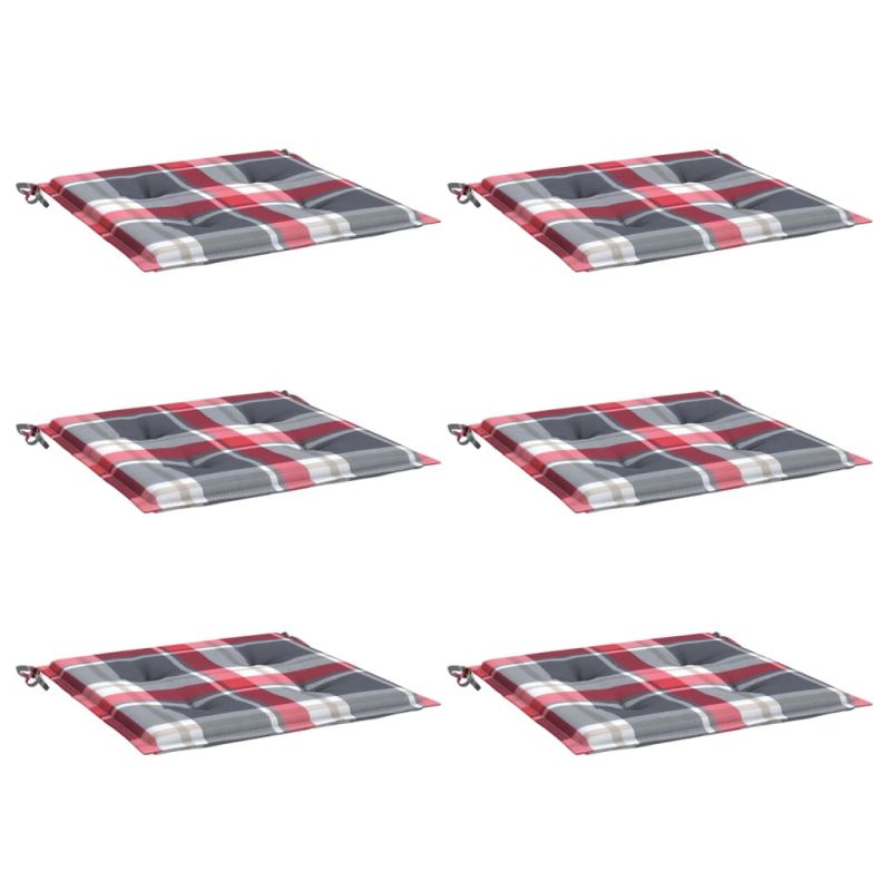 Възглавници за стол 6 бр червено каре 40x40x4 см Оксфорд плат