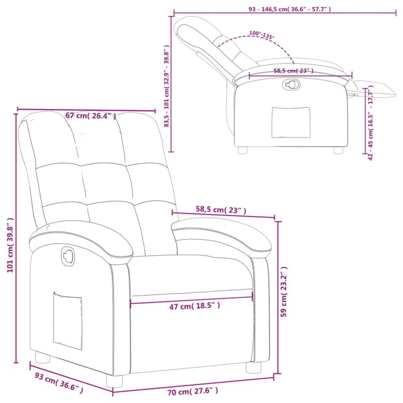 Отпуснете се и се потопете в този изключително удобен кресло-реклайнер! Функция за ръчно накланяне: Този кресло-реклайнер има дръжка от дясната страна. Можете ръчно да регулирате поставката за крака и облегалката във всяка позиция, според вашия комфорт, с едно просто издърпване на дръжката. Тази функция позволява максимален наклон от 135 градуса. Освен това, облегалката може бързо да се върне в първоначалното си положение с лесно издърпване на дръжката.Комфортно седене: Дебело подплатената седалка, облегалката и широките подлакътници, покрити с плат, осигуряват уютно и топло усещане, карайки ви да се чувствате прегърнати, докато седите. Платът е с семпъл и изчистен вид, дишащ е и е издръжлив.Удобен страничен джоб: Този кресло има страничен джоб, в който да държите важните си вещи под ръка.Солидна и стабилна рамка: Рамката, изработена от дърво и метал, осигурява здрава структура и стабилност. Този кресло-реклайнер е удобен и издръжлив. Максимално 110 кг на седалка.