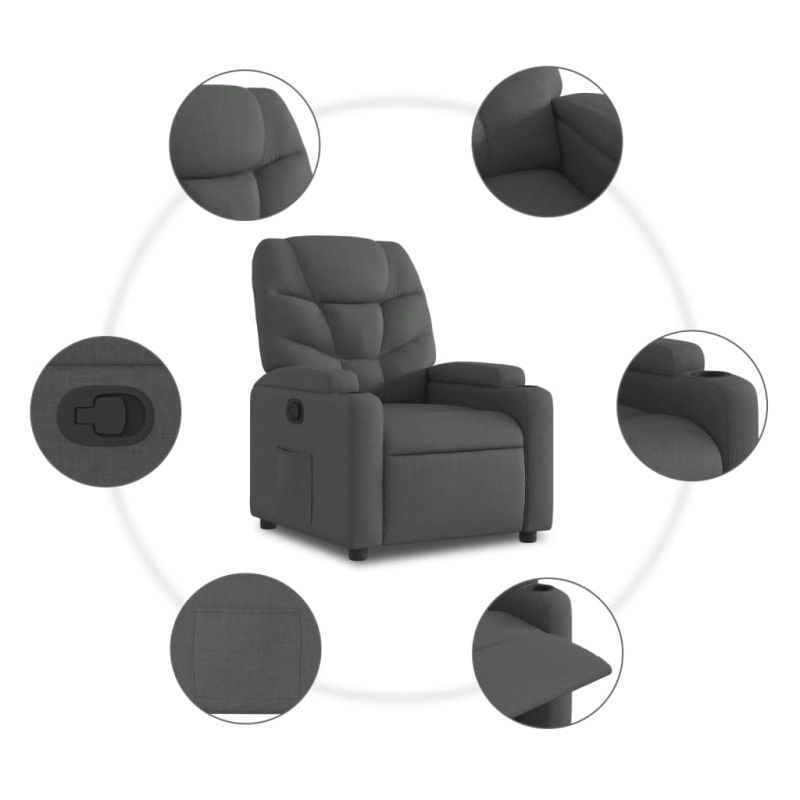 Фотьойл с регулируема облегалка, тъмносив, плат