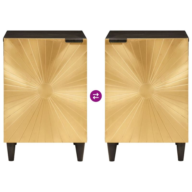 Този модерен бански шкаф предлага стилно и лесно решение за вашите нужди от съхранение. Проектиран е да се вписва перфектно в съвременни домове, с чисти линии и минималистичен изглед, докато оптимизира пространството в банята. Контрастът между черното и златистото придава елегантен акцент, правейки го визуално атрактивен допълнителен елемент за всяко банско. Идеален е за хора, които искат да съхраняват нещата си стилно, без да правят компромиси съсредоточеността в пространството. Премиум материали: Изработен от масивна мангова дървесина, известна със своята здравина и красиви текстури. Изборът на това дърво гарантира качество и предлага топъл вид, който се вписва в дизайна на шкафа. Инженерните компоненти добавят лека опора, оставяйки шкафа здрав, но и лесен за пренасяне. Компоненти и дизайн: Вратите с дръжки дават чиста предна част с лесен достъп до съхраняваните неща. Интериорът има рафтове, които са практични и ефективни за всякакви бански принадлежности. Пантите на вратите увеличават функционалността, позволявайки гладко отваряне. Функционални характеристики: Шкафът е проектиран с практично съхранение, включва много рафтове и отделения, задоволяващи разнообразни нужди. Съвременният вид идва от златистите предни части и черните крака, предлагащи стилен и функционален дизайн. Гъвкаво използване: Идеален за съвременни бани, този шкаф помага да поддържате всичко подредено и организирано. Осигурява място за тоалетни принадлежности, хавлии и още, допринасяйки за приятна обстановка. Грижа и поддръжка: Поддържайте шкафа, като го избърсвате с влажна кърпа. Избягвайте агресивни химикали, за да не увредите покритието. Лесната поддръжка прави всичко безпроблемно.