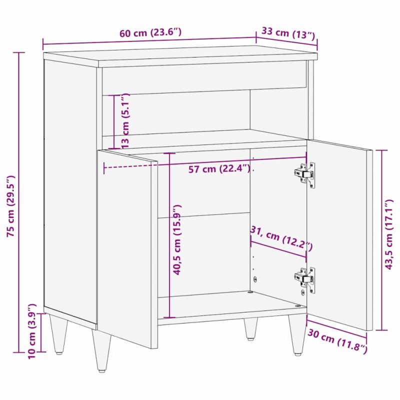 Този масивен дървен страничен шкаф е як микс от модерен стил и практичност. Проектиран е така, че да се вписва идеално в всекидневни или трапезарии с чисти и прости линии. Елегантният дизайн с златни акценти на черен фон наистина прави впечатление и добавя класическа нотка в стаята. Независимо дали си в модерен апартамент или в предградие, този шкаф предлага не само функционалност, но и стил. Масивно мангово дърво: Шкафът е предимно направен от масивно мангово дърво, което е здраво и топло, предлагаща дълготрайна и еко опция за пространството ти. Неговата естествена текстура внася уют и индивидуалност, а инженерното дърво поддържа структурата, запазвайки я лека, но здрава. Качество на компонентите: С тапицирани крака от инженерно дърво и врати с панти, които излъчват модерен дизайн, този шкаф стои стабилно на всякакви подове. Простите бар дръжки му правят отварянето лесно и добавят стиль, а черният фон подчертава блестящите златисти врати, придавайки му елегантен щрих. Просторно съхранение: Този шкаф съчетава стил и практичност с просторни отделения и рафтове, създаващи място за всичките ти неща. Независимо дали съхраняваш фин порцелан или странни предмети, той поддържа всичко в ред. Универсална употреба: Перфектен за трапезарията да събираш прибори или за всекидневната ти за показване на колекции, лесно се наглася на нуждите ти. Без значение дали организираш вечеря или просто поддържаш нещата подредени, този шкаф е супер удобен. Указания за грижа: Да поддържаш този шкаф в добро състояние е лесно, просто го избърсвай с суха кърпа. Стой далеч от агресивни химикали, за да запазиш красивото матово покритие и неговия чар непокътнат.