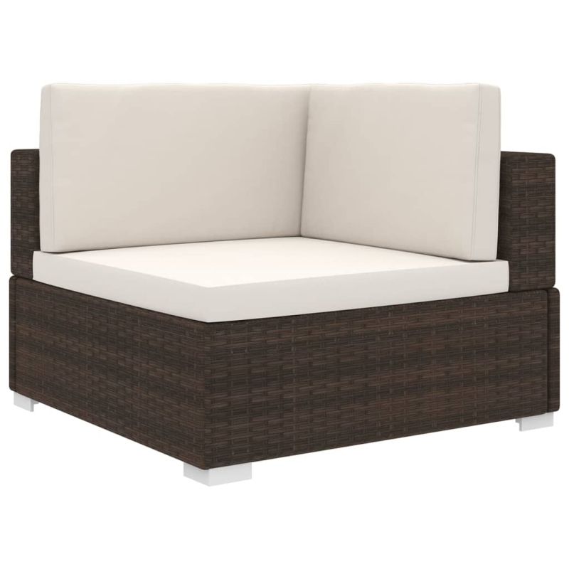 Модулен ъглов фотьойл с възглавници, 1 бр, полиратан, кафяв