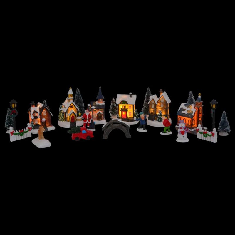 Този коледен декор за маса с LED светлини внася вълшебство у дома ти. Съвременният му дизайн спазва простите линии и е супер функционален, идеален за всяко празнично оформление. Изработен с внимание, той е перфектен акцент, който привлича вниманието на всеки, независимо от възрастта, и носи топлина с многоцветните си LED светлини. Поставен на масата в хола, той добавя нотка коледна магия, създавайки радостни моменти и незабравими спомени. С гладката си текстура и нежни детайли, той е приятен за окото и усещането, разказвайки великолепна зимна история в дома ти. Премиум конструкция от смола: Този декор е направен от висококачествена смола, което го прави издръжлив и с дълготрайна привлекателност. Смолата предоставя здрава основа за сложни детайли, отразяващи красотата на сезона. Всеки елемент е изработен с грижа, за да изтърпи времето и да остане ценен акцент за много празнични сезони напред. Интегрирано LED осветление: Оборудван с LED светлини, захранвани с батерии, този декор излъчва успокояваща светлина, която носи празничния дух в всяка стая. LED осветлението подчертава многоцветния дизайн и създава топла и приветлива атмосфера за твоите събирания. Лесно може да се пренарежда навсякъде, добавяйки чар на всяко местенце. Ръчно боядисан завършек: Ръчно боядисаният завършек добавя артистичен стил към декорацията. Този внимателен детайл, с присъщия чар на селската сцена, осветява всичко, от малките покриви до красивите фонова картини. Боята гарантира, че декорацията остава ярка и привлекателна, допълвайки другите коледни аксесоари у вас. Комплексни компоненти на комплекта: Комплектът включва много декоративни фигури - дървета, лампи, снежен човек, лисица, Дядо Коледа, огради, деца, мост и къщи. Всеки елемент е проектиран, за да създава единен и интересен селски пейзаж, разказвайки визуални истории всяка коледна сезона. Лесна поддръжка: Проектиран с лесна поддръжка на ум, този декор изисква минимални усилия. Просто го почиствай редовно с мека, суха кърпа, за да запази свежия си и празничен вид година след година. Тази толерантна рутина обещава, че декорацията грее свежа и остава централна част на твоите празнични тържества. ВНИМАНИЕ: Опасност от токов удар. Този продукт не е предназначен за използване от деца. Само за употреба от възрастни. ВАЖНО: САМО ЗА УПОТРЕБА НА ЗАКРИТО И НА СУХО МЯСТО.