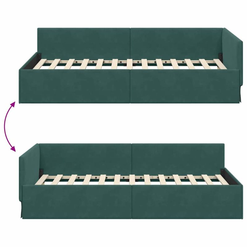 Ъглова рамка за легло Тъмен зелен 100 см x 200 см Кадифе