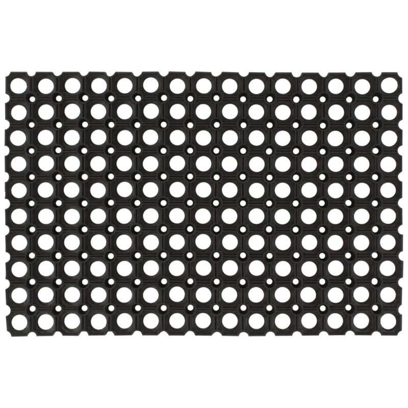 Поставете тази гумена изтривалка на пода във вашия вход и пазете мръсотията отвън! Устойчив материал: Изтривалката за входна врата е изработена от гъвкава, ударопоглъщаща, устойчива на износване гума, осигуряваща издръжливост и устойчивост на петна.Нехлъзгащ дизайн: Тази входна постелка има повдигнати върхове и оребрена текстура за по-добро сцепление и стабилност, като ефективно предотвратява всяко плъзгане по време на употреба.Дренажна функция: Тази гумена изтривалка е проектирана с дренажни отвори, които помагат за оттичане на кал, дъждовна вода или петна от вода от обувките. Освен това се почиства лесно – просто изплакнете с вода!Широки приложения: Тази гумена постелка може да се използва както на закрито, така и на открито, като например в барове, кухни, ресторанти, складове, градини и други влажни и гъсто населени индустриални зони.