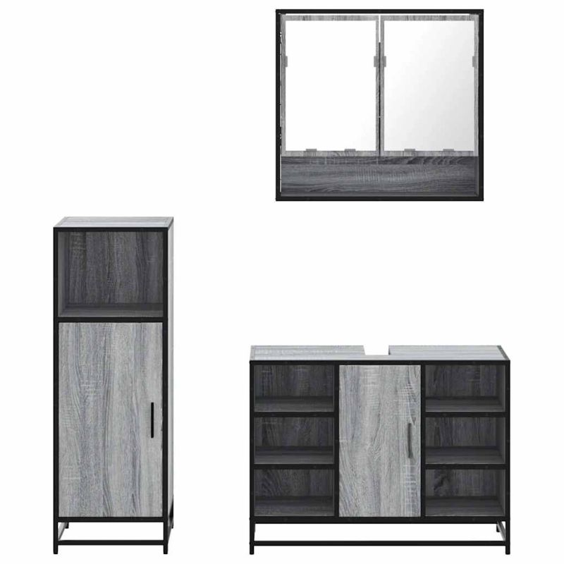 Комплект мебели за баня от 3 части сив сонома инженерно дърво