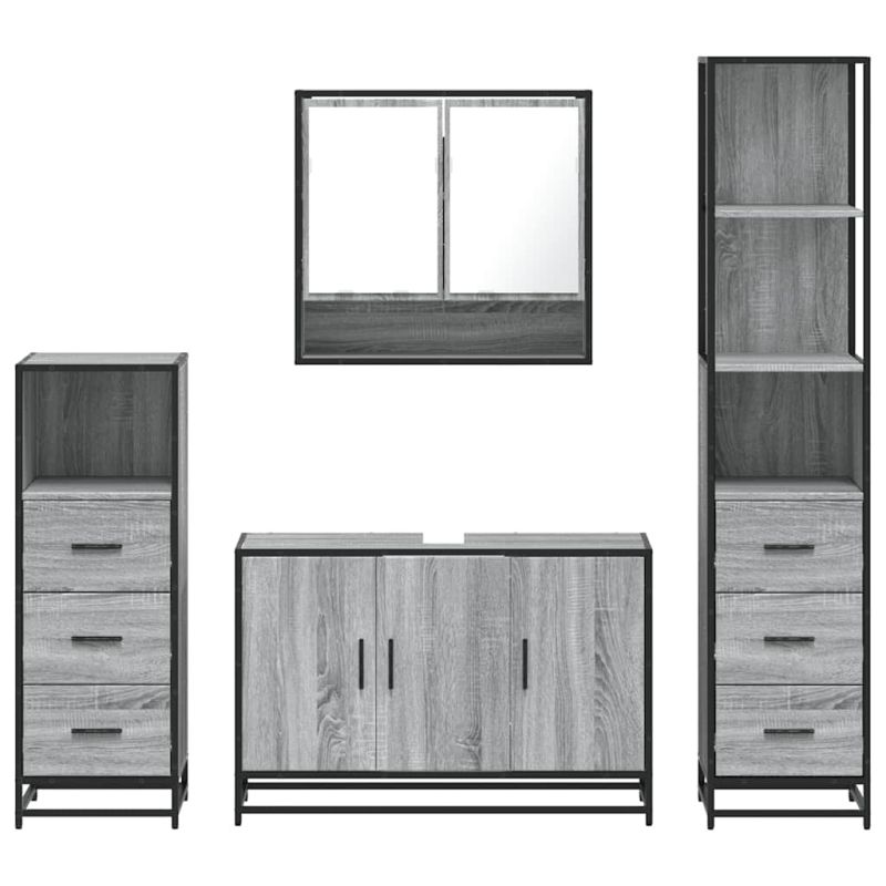 Комплект мебели за баня от 4 части сив сонома инженерно дърво