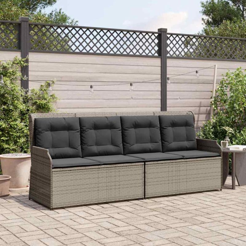 Отпуснете се и се насладете на открито в тази удобна накланяща се градинска пейка! Издръжлив материал: PE ратан, известен също като полиратан, е здрав синтетичен материал с малко необходима поддръжка, който прилича на естествен ратан. Той е лек, лесен за почистване и често се използва за външни мебели поради своята издръжливост и устойчивост на атмосферни влияния.Регулируема облегалка: Този градински стол има дръжки. Можете да регулирате облегалката във всяка позиция чрез издърпване на дръжката и бързо да я върнете в първоначалната ѝ позиция.Удобна седалка: Тази мебел за открито, снабдена с плътно подплатени възглавници, предлага удобство при сядане.Калъф, който може да се сваля и може да се пере: Тези възглавници за седалки имат подвижни калъфи за лесно пране и поддръжка.Здрава и стабилна рамка: Стоманената рамка с прахово покритие гарантира, че градинската мебел е здрава и стабилна за ежедневна употреба на открито. Добре е да се знае:За да сте сигурни, че вашите външни мебели ще останат красиви, ви препоръчваме да ги защитите с водоустойчиво покривало. Максимално 110 кг на седалка. Съобразете се с риска от открит огън и други източници на силна топлина в близост до продукта.