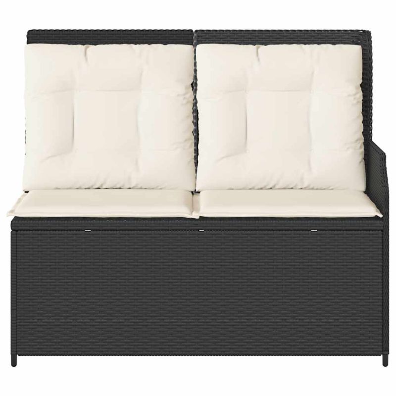 Накланяща се градинска пейка с възглавници черен полиратан