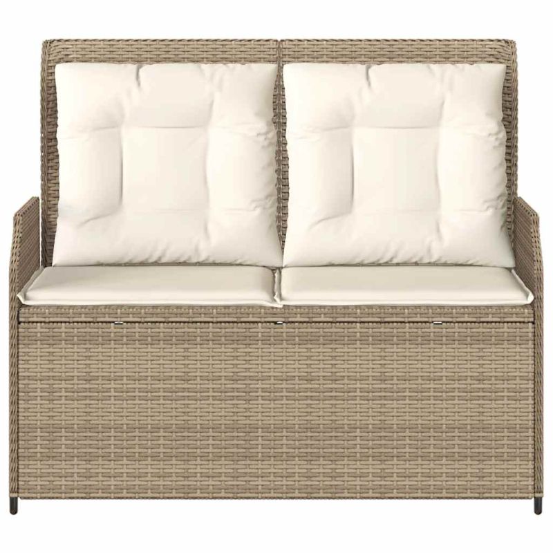 Накланяща се градинска пейка с възглавници бежов полиратан