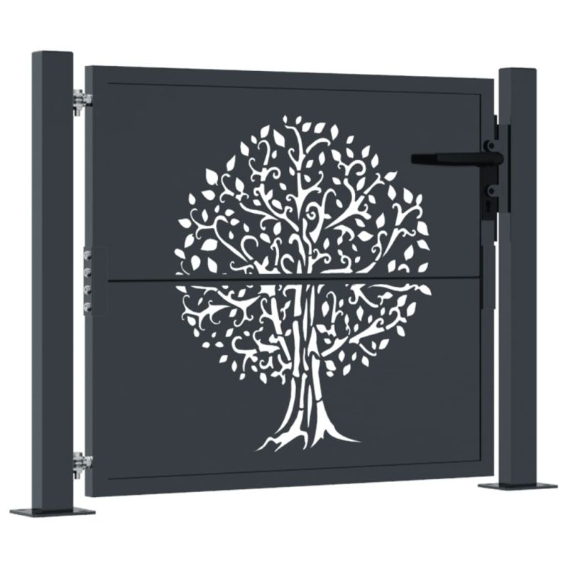 Градинска порта, антрацит, 100x100 см, стоманена, дизайн с дърво