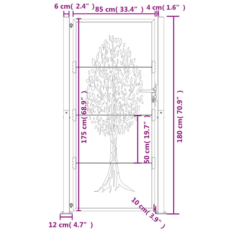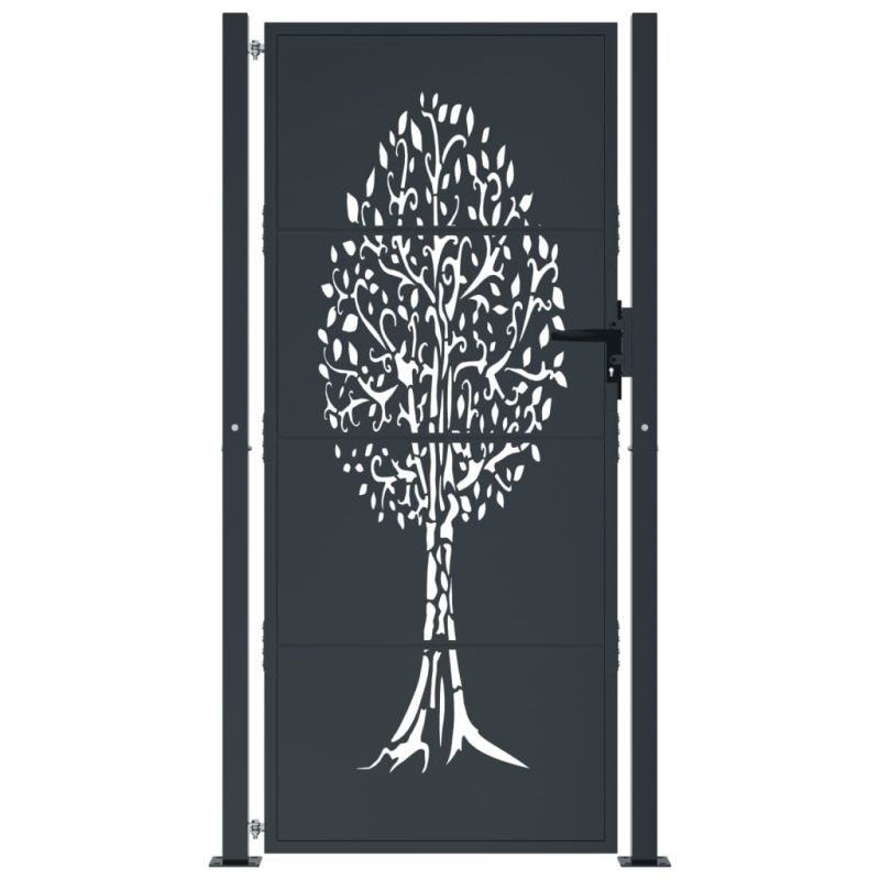 Тази градинска порта, отличаваща се с перфектна комбинация от здравина и елегантност, е идеална врата за оградата около вашата градина или вътрешен двор. Издръжлив материал: Стоманата е изключително твърд и здрав материал. Тя предлага здравина и стабилност. Поцинковането осигурява по-добра защита срещу корозия и е полезно за продукти, които ще се използват на открито, както и при неблагоприятни условия. А праховото покритие върху стоманата създава защитен слой срещу износване.Лазерно изрязан дизайн: Оградната порта има красив лазерно изрязан дизайн, който добавя уникален чар към вашия дом.Заключваща се система: Външната порта е оборудвана със заключваща се система за допълнителна сигурност.Лесна за сглобяване: Входната врата се предлага в комплект с два стълба с фланцови плочи и монтажни аксесоари за лесен монтаж. Не използвайте този артикул, ако някой от компонентите е счупен, скъсан или липсва.