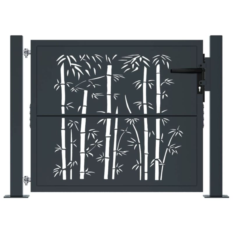 Градинска порта, антрацит, 100x100 см, стомана, бамбуков дизайн