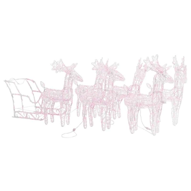 Коледна украса елени с шейна, 280x28x55 см, акрил