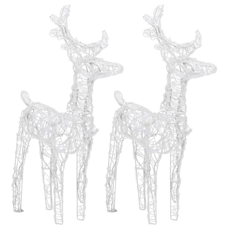 Създайте красива украса в двора си този празничен сезон с тези очарователни светещи коледни елени. Материал, устойчив на атмосферни влияния: Изработена от акрил, тази коледна украса е перфектно устойчива на атмосферни влияния през празничния сезон.Енергоспестяващи LED: Всеки светещ елен разполага с 40 LED лампи, които са енергийно-ефективни и дълготрайни.Различни светлинни ефекти: Осветеният елен е проектиран с 8 различни светлинни ефекта: комбинация от всички ефекти, бавно светване, блещукане/светкавица, вълни, редуване/течаща вода, последователно, постоянно включено и бавно избледняване. Забележка:Ако използвате продукта на открито, моля, уверете се, че USB връзката е включена на закрито в суха среда.