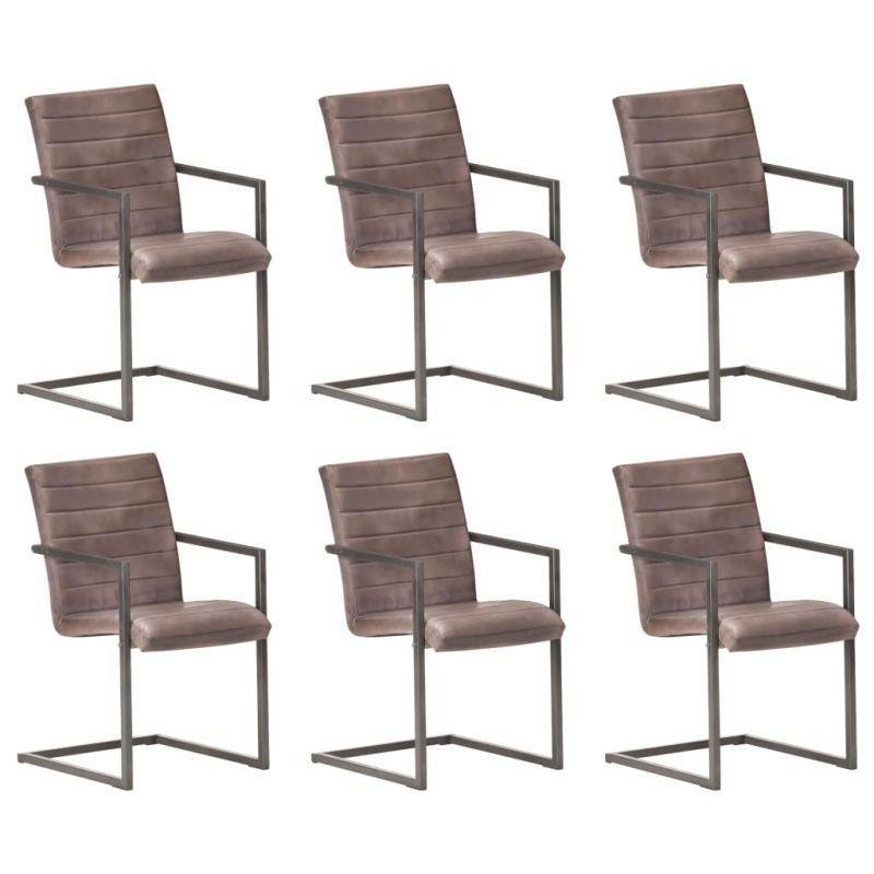 Конзолни трапезни столове, 6 бр, кафяви, естествена кожа