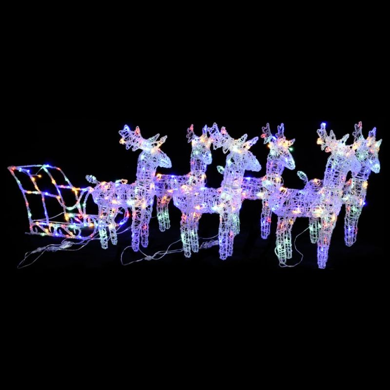 Създайте красива украса в двора си този празничен сезон с тези очарователни светещи коледни елени с шейна. Устойчив на атмосферни влияния материал: Изработени от акрил и PVC около стоманена рамка, тези светещи елени с шейна са напълно устойчиви на атмосферни влияния през празничния сезон.Светеща празнична украса: Предварително осветена с 240 LED лампи, които са енергийно ефективни и дълготрайни.Различни светлинни ефекти: Коледната декорация е проектирана с 8 различни светлинни ефекта: комбинация от всички ефекти, бавно светване, блещукане/светкавица, вълни, редуване/течаща вода, последователно, постоянно включено и бавно избледняване. Забележка: Ако използвате продукта на открито, моля, уверете се, че USB връзката е включена на закрито в суха среда.Продуктът има USB конектор, но не е включен сертифициран източник на захранване от 5V USB Този продукт се захранва с DC 5V, но сертифицираният 5V USB източник на захранване не е включен в комплекта. По-високото напрежение може да доведе до прегряване на устройството и да доведе до повреда на устройството и потенциален риск от прегряване и пожар.